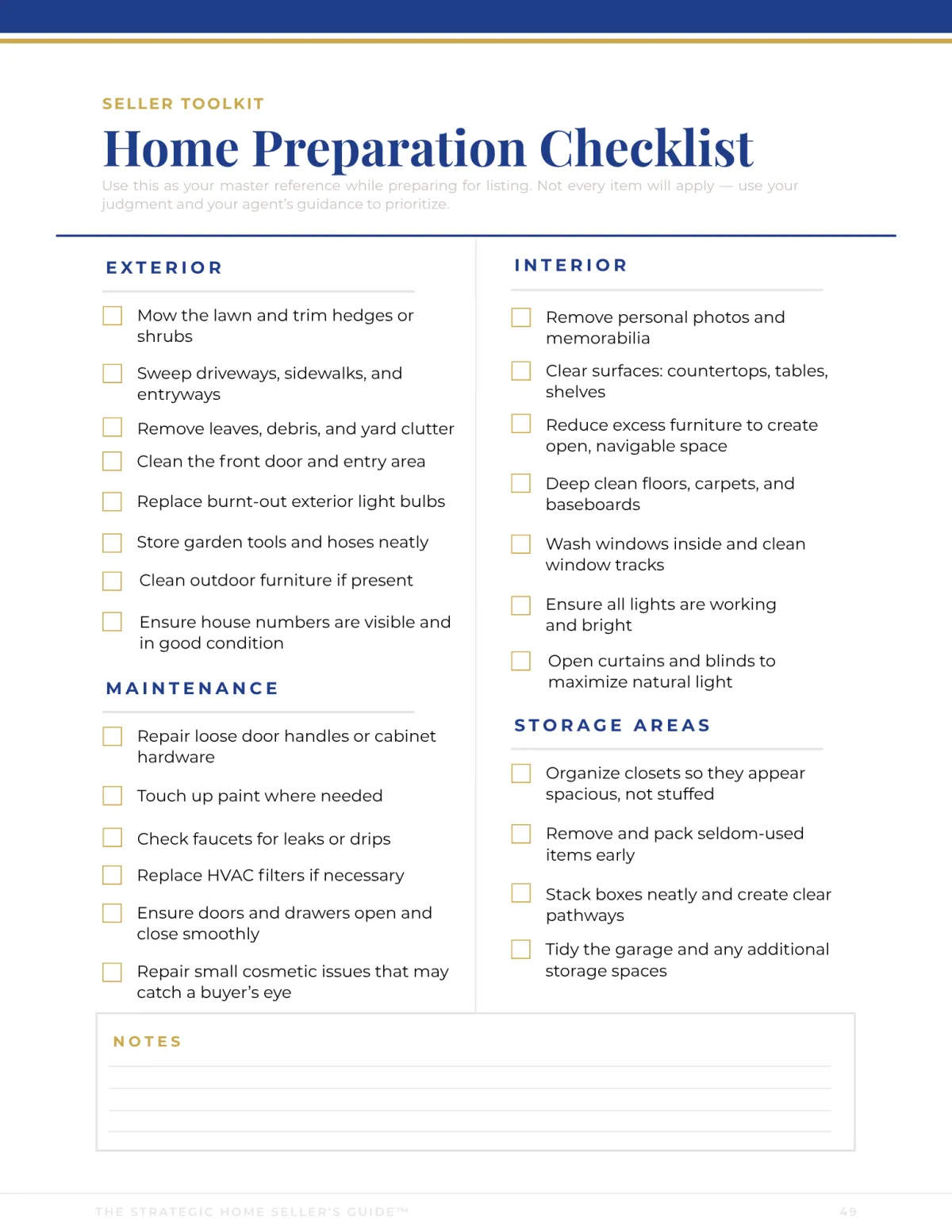 Sellers understand exactly what to do before listing — room by room, inside and out — so agents spend less time repeating the basics at every appointment.
